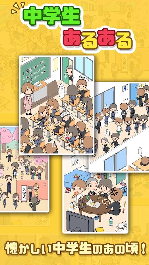有一个初中生在这款游戏中玩家们是以一个学生的身份开始的游戏,不是什么上课学习,只是会安排不同的找不同还有挑战任务。这里面的画风都是手绘的动漫场景,在这里大家是以一个小男孩的角色在学校还有班级中活动的。在这里面都是日语,部分的语句中有中文出现,大家可以理解个大概的意思还有就是会有动画手势提示告诉你们接下来需要做的是什么。