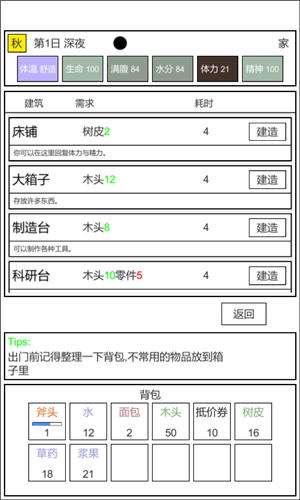 1、这是一款十分有趣的纯文本的冒险体验,纯粹的单机游戏,不需要连接到互联网也可以自由玩耍,打开两个饼,你收集所有的食物成分,自己做,开始没有瓶子,所有机构收集材料,他们的实践,打开一把斧头,一个强大的武器,开始没有设备,和所有的设备,一个技能不会开始,发现自己所有的技能,开始只有一个营地,所有敌方都需要自己去探索。