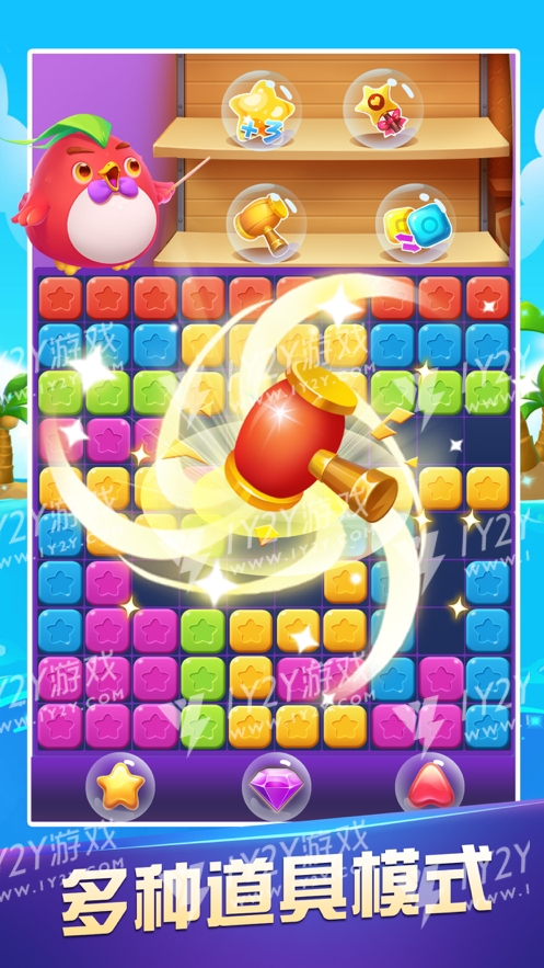 1、欢乐的消星星游戏,趣味的闯关玩法,相同颜色的方块可以直接进行消除得分;