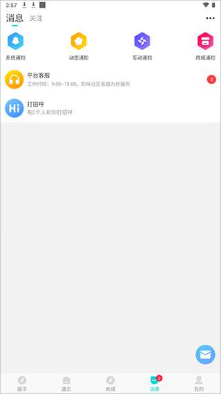 4、消息页面下可以对好友消息和平台消息进行统一管理,而且关注的好友动态也可以在这里第一时间呈现。