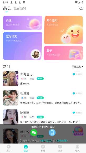 3、在【遇见】页面下可以通过筛选功能快速帮你处cp。