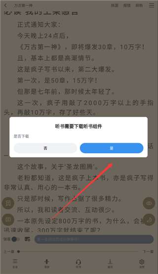 2、点击听书功能会提示你下载一个听书插件,选择是即可下载。