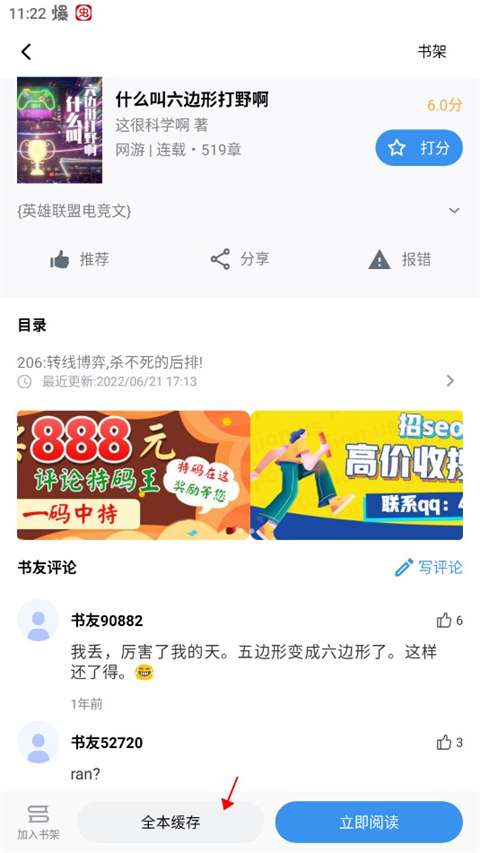 3、在小说界面中选择全本缓存。