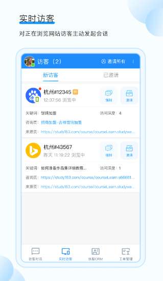 3、访问者查看,可以在线查看每个新访问者和受邀访问者,非常方便。
