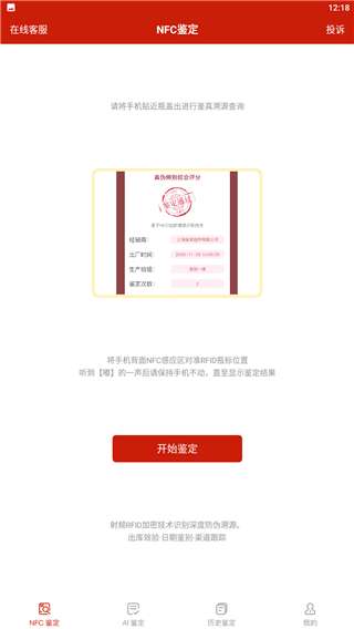 1、NFC即时验证:支持近场通信(NFC)功能。只需用手机触摸酒瓶标签,防伪码就会自动读取。操作方便。