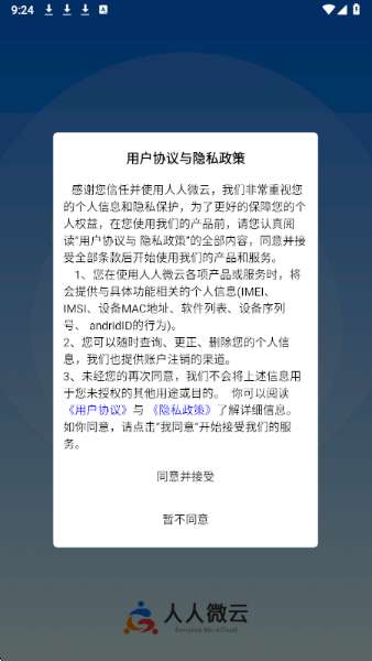 1、在本站下载人人微云app。同意用户协议。