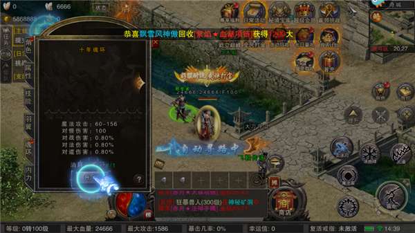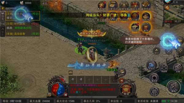 2、延续经典玩法,如角色成长、杀怪和装备爆炸、多人PK等。