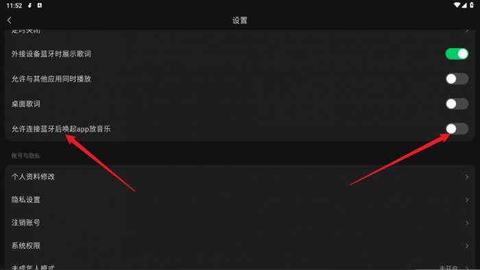3、滑到底下,找到允许连接蓝牙后换起App播放音乐即可。