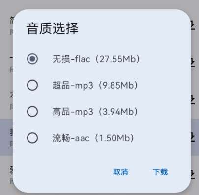 3、搜索成功后,点击歌曲旁边的下载按钮,选择合适的音质即可下载。