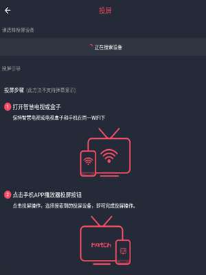 4、最后等待自动搜索电视设备,连接成功后即可投屏了。(注意想要投屏电视的话,要电视和手机在同一个WIFI下)。
