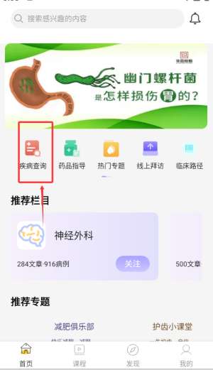 2、通过疾病查询功能检索各种疾病的详细信息,包括典型症状、诊断标准和最新治疗指南。
