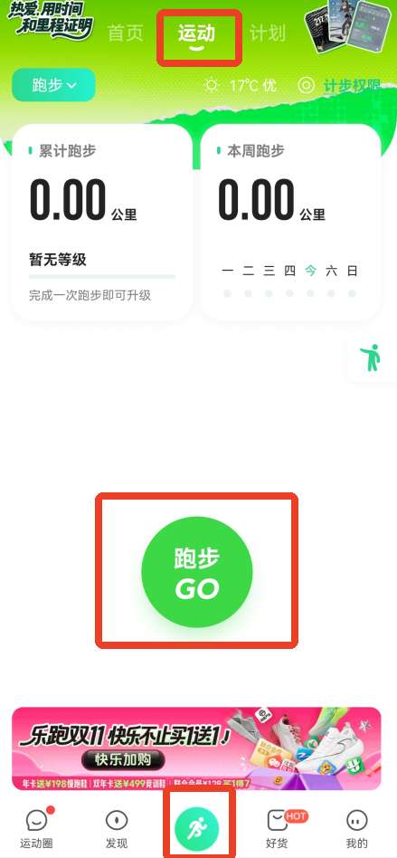 1、首先,点击体育界面顶部的“运动”按钮,然后点击“跑步”。