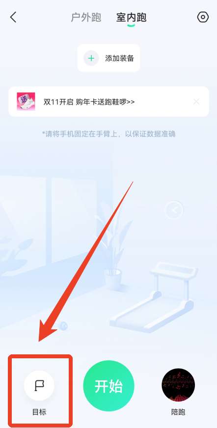 2、开始跑步后,点击左下角的目标。户外跑步和室内跑步是一样的。