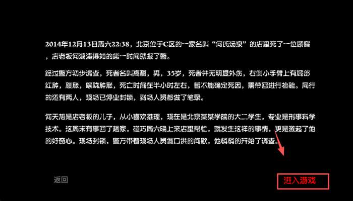 2、阅读背景故事后,点击“进入游戏”继续。了解故事背景有助于更好地理解游戏情节。