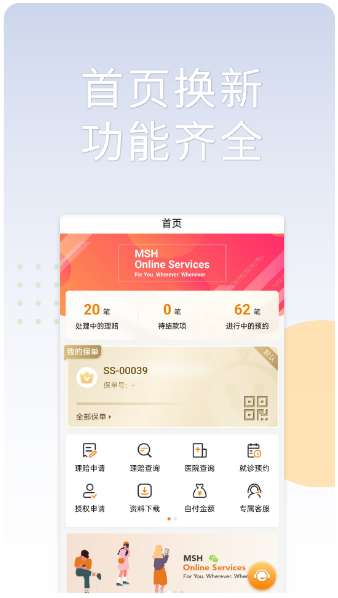 MSHSERVICE软件是中国排名靠前的高端医疗险服务提供商,为了让每位会员可以享受到更加简单便捷的服务,精心打造了简单易用的手机应用,登录后即可查询到保单服务信息、网络医院信息、理赔记录、事先授权记录、应付金额等服务信息。当您需要帮助时,我们的24小时人工客服热线为您提供全天候的关怀。用户可以通过Msh Service app查询保单信息,用户可以立即找到并立即查看。(本应用仅供万欣和会员使用)