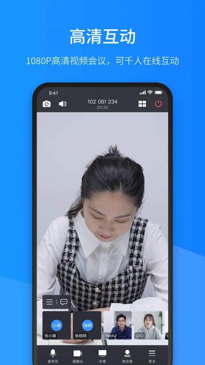 1、高清视频会议:支持720p高清视频通话,图像清晰流畅,无卡顿,保证会议质量。