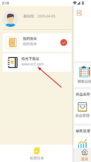 1、打开聚宝记账APP后,点击左上角的账本图标。