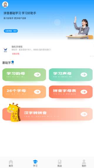 2、在学习区,我们为您提供更多的拼音,使用户可以快速在线学习。