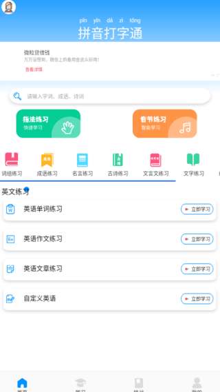 1、用户可以在主页上选择打字练习方法,使他们能够快速在线打字。