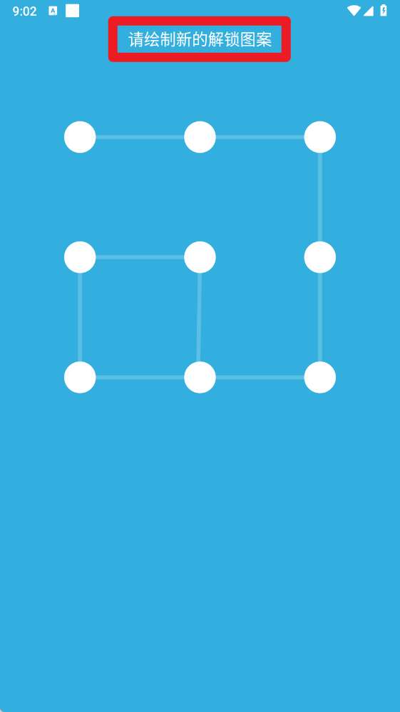 2、进入应用后,需先绘制新的解锁图案,并设置【密保问题】,用于忘记密码时找回。