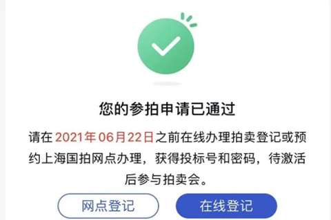 参加申请受理,可在线办理拍卖登记或预约网点办理拍卖登记。