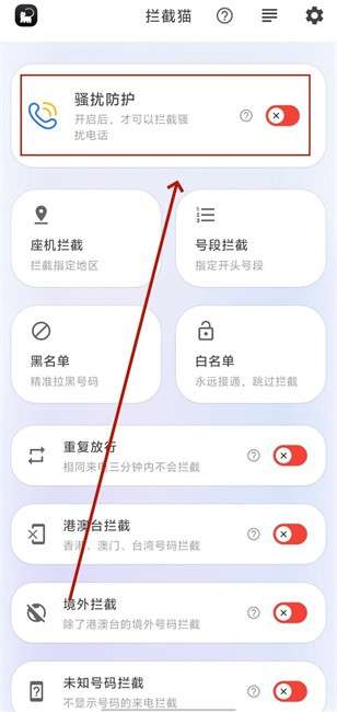 4、比如点击座机拦截之后就可以根据地域来进行拦截