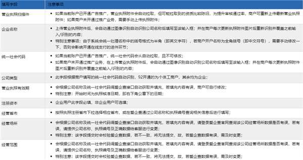 企业资质各字段填写注意事项如下: