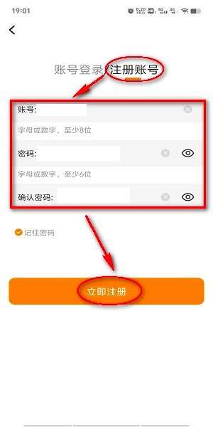 3、新用户可以切换到右侧的“注册帐户”,填写帐户密码,然后单击“立即注册”。