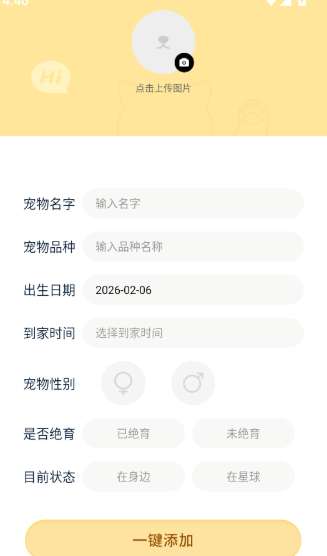 4、然后就可以输入详细的宠物信息,点击“一键添加”按钮来进行实时添加。