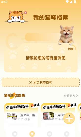 3、之后就可在“猫咪档案”界面中,点击“添加我的猫咪”按钮来进行下一步。