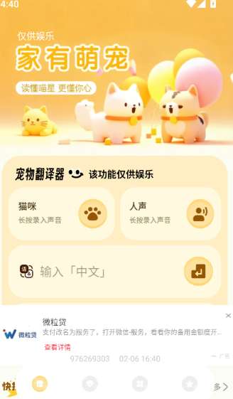 3、该软件将准确翻译猫语和猫叫声,准确翻译相关的猫语,并实时准确翻译。