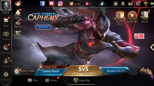 打开传说与对决后,进入游戏后,点开右上角的齿轮样设置。