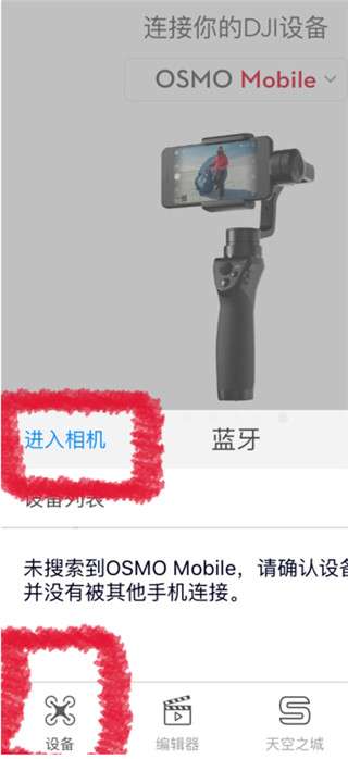 2、然后打开DJI Go APP→进入【设备】→点击【进入相机】。