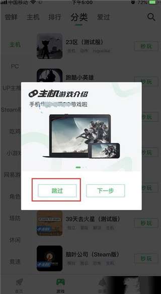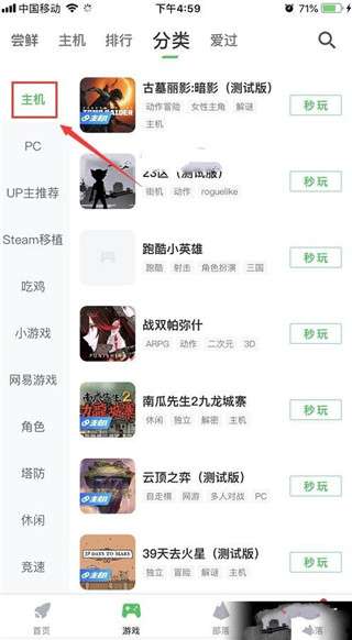 2、选择上方标注位置的分类,进入游戏分类专区。