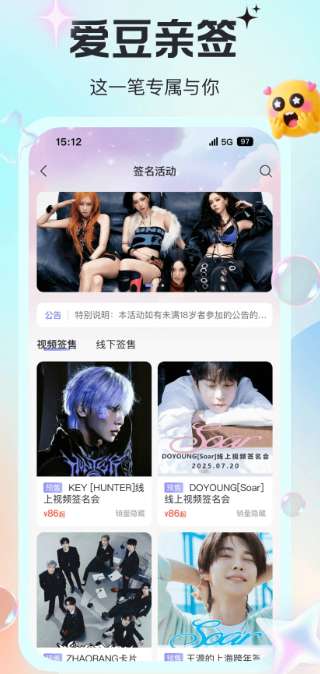2、优先预订线下活动,如支持音乐会、粉丝见面会、舞台剧、签售会、展览等;彩票登记和电子门票服务。