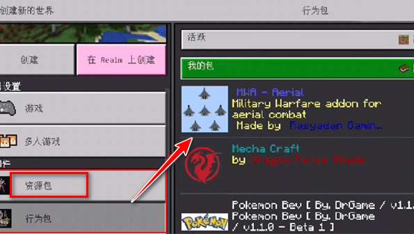 7、返回游戏创建世界,在资源包中即可选择刚才下载到的mod模组了。