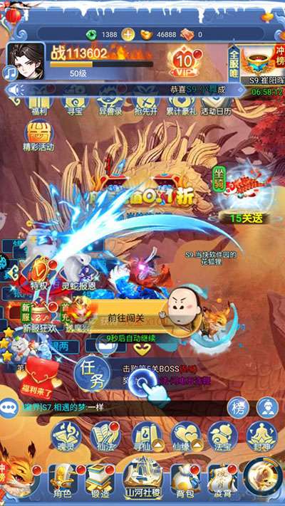4、接下来玩家就可以自动闯关,让角色自动战斗并挑战BOSS;这样可以让你轻松地获得经验和奖励,同时节省时间和精力。