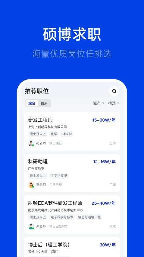 理聘是一款受欢迎的免费求职招聘软件,拥有丰富的职位信息和资源可以实时更新,方便用户直接进入首页中搜索浏览,轻松找到满意的工作职位,还用户详细的职位介绍,轻松让用户了解各种工作信息,随时随地自由进行求职,能完全满足所有使用需求,还具有在线咨询功能,允许用户直接咨询HR进行面试,自由享受优质的求职服务,还提供个性化的简历编辑功能,可以帮助用户轻松打造精美的简历,轻松提升面试求职通过率。
