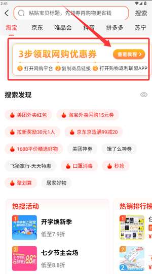 3、参照三步网购领券教程指引,即可获取优惠券实现购物省钱。