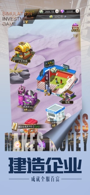 老板钱生钱是要你去一手的创办一个很厉害的商业公司的模拟类手游。你想要成为一个合格的总裁的话,那么你就需要自己去找你们员工确定项目,要让你的钱生钱,这个过程是比较艰难的,但同时也是充满着挑战性的。一开始你当然是需要自己白手起家了。