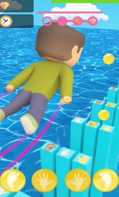 手脚塔跳手脚并用完成通关,看好图案,点击即可。过程中你会收集到金币,或者是一些道具,能够帮助你用磁铁吸住周围的金币提高你的关卡收益。每次挑战都能够刷新自己的成绩的话,就可以获得额外的奖励。不过一定要看准时间,前方障碍,可是很多的而且手势变化也很多。