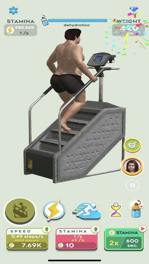 Idle Workout这是一款帮助自己学了角色减肥的游戏,里面会提供不同的健身器材,需要根据任务以及关卡的分数进行挑战,想要控制自己的角色,很好的去完成每一个健身任务,可以去升级下方的三个种类,一个是动的速度通过提升等级,可以让它加快,那一个则是持久力,也就是耐力坚持时间越长越好,坚持的时长越长后续获得的收益就会越多。