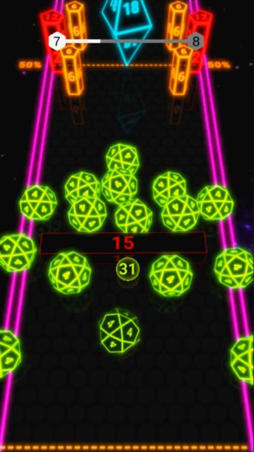 积木霓虹灯游戏中的的所有的场景还有通道上面的障碍全部都是用彩色的霓虹灯来设计的。点击自己的小球开始移动就可以了,每一次的步数会在小球的球身上面显示出来。前方的障碍上面都会有数字显示,如果撞击上去你的小球数字救护减少,不过没有关系到达终点绝对都是足够的。只要大家控制的线路障碍较少基本可以安全的到达终点。会有完成的百分数线条显示在通道上面。