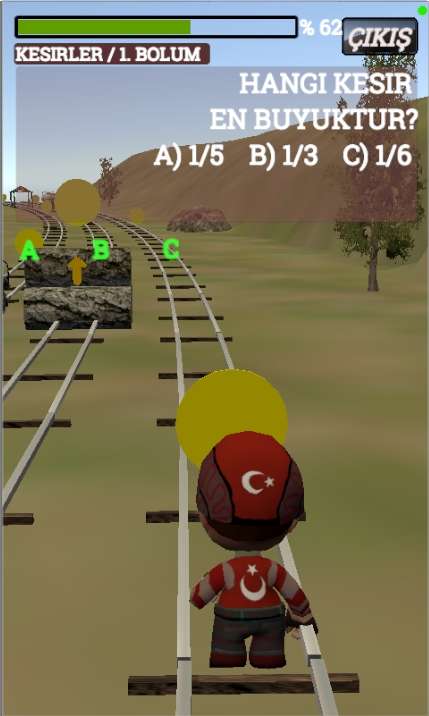 Kesirler在火车的铁轨路线设置的通道上面还有不同高度的木块堆积在一起,玩家们开始通关的时候会有箭头指示告诉你用那些手势可以滑动控制角色跳跃翻转等其他的动作。跑酷的通道上面会有三个不同的轨道,障碍都是设计好的自己看好方向更换路线就可以了。场景中的风景设置还是很清晰的大家根据每一个障碍的摆放来完成挑战,分数越高你积累的金币就会越多还有就是每一个新的任务都会有奖励给你。