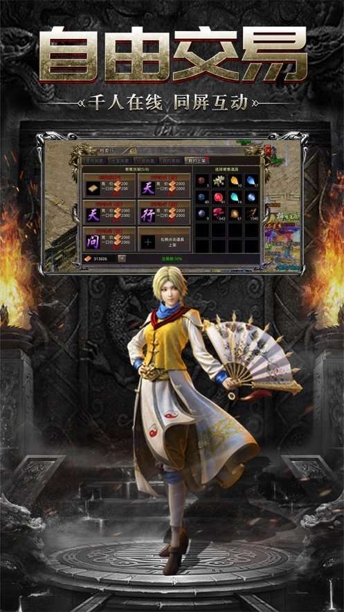 1、笑傲皇城唯我独尊,神器刷怪快速升级,千人同屏点燃激情,装备保值自由交易