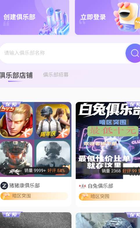 2、在俱乐部列表中汇总所有游戏俱乐部进行推荐显示,方便用户选择加入的俱乐部。