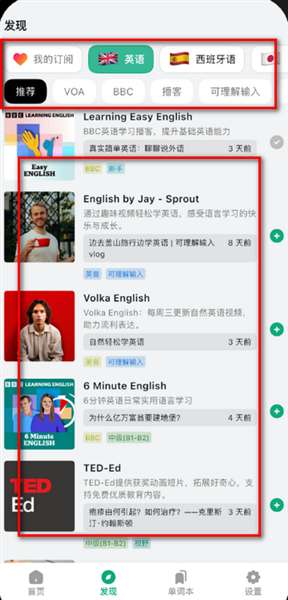 听点点app为用户提供更便捷高效的外语学习服务,丰富的学习内容可以轻松实现媒体、本地音频导入,并可以生成高质量的双语字幕渲染,帮助您在日常生活中更高效地学习外语。丰富多样的外语资源涵盖英语、日语、德语、意大利语等,可以在一个地方满足用户的学习需求,您可以根据自己的需求选择相应的语言学习,帮助提高专业学习效率。