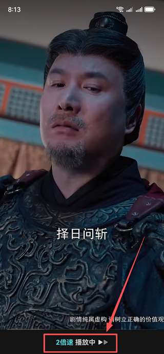 3、长按播放界面任意空白位置即可开启倍速播放,此时屏幕下方会显示倍速播放中;