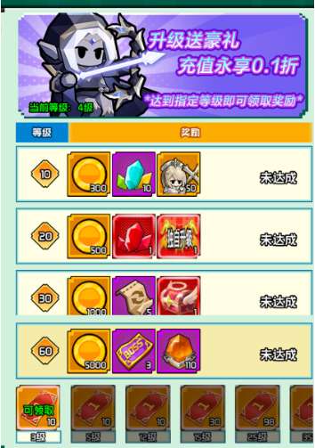 2、升级送豪礼,达到指定等级即可领取奖励。