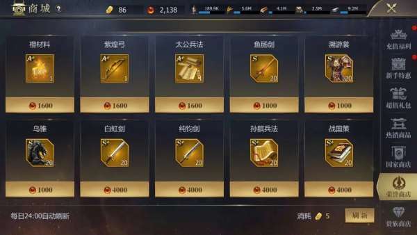 氪金大佬可以直接买专属和vip武将,平民玩家留着,每日买两档军令,从最高的关卡往下刷,等出活动,金锭十连抽奖必出2橙,且有消费返利的活动可以悉听尊便。